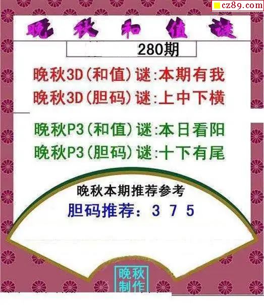 晚秋和值谜2025280期3d图谜
